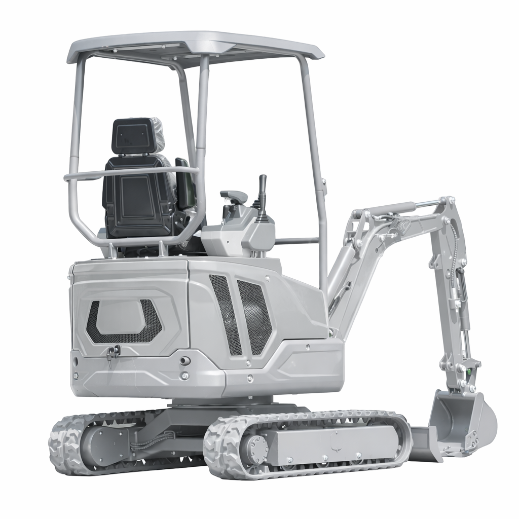 Mini koparka o masie roboczej 1000 kg. Kompaktowa, a przy tym mocna i stabilna, idealna do prac ziemnych na działkach, budowach i w miejscach o ograniczonej przestrzeni.